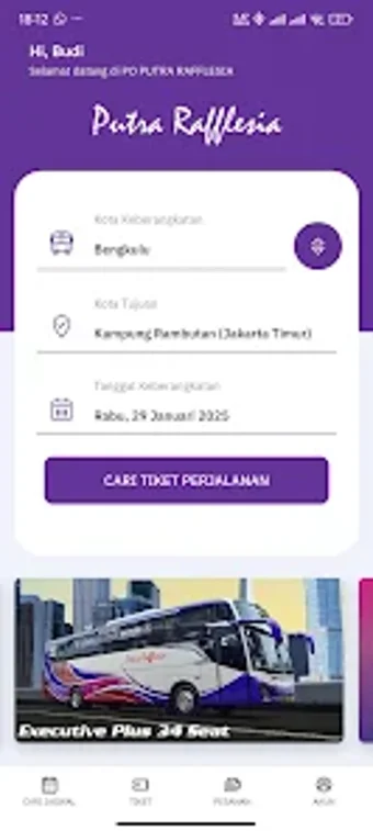 Putra Rafflesia adalah aplikasi mobile yang dirancang untuk memudahkan pengguna dalam membeli tiket perjalanan dari Jakarta dan Bogor menuju Bengkulu. Dengan antarmuka yang sederhana, pengguna dapat dengan mudah mencari dan memilih rute yang diinginkan. Aplikasi ini juga menawarkan berbagai pilihan pembayaran online, sehingga proses transaksi menjadi lebih cepat dan praktis, memungkinkan pengguna untuk membeli tiket kapan saja dan di mana saja tanpa kesulitan.